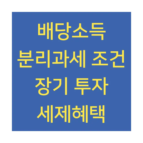 배당소득 분리과세 조건 장기 투자 세제혜택